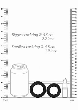 | Dimensions package | 12 x 11,50 x 2,50 cm | | Weight package | 42 gram | | Product dimensions | 5,5 x 5,5 x 1 cm | | Product weight | 19 gram | | Product diameter | 5,5 cm | | Inner diameter | 3,5 cm | | Specifications | Specifications: - Small Ring: 48 mm - Large Ring: 55 mm | | Materials | Silicone |