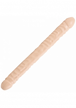 Get ready for a double dose of fun. Doc Johnson's 18 inch Double Header Dong has a realistic head on each end and a bulging veined shaft for exciting sensations. The dong is flexible for solo play and long enough for partner penetration. Made of latex-free non-phthalate PVC and Doc Johnson's proprietary antibacterial Sil-A-Gel fomula. Available in white and black. Proudly made in America.