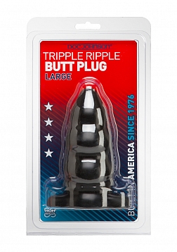 Satisfy your desire for anal adventures with the 6" Large Triple Ripple butt plug. This thick plug has a unique shape that starts off petite at the head then gradually widens and tapers into 3 big bumps for tons of sensation during insertion and removal. The wide base makes it safe, and compatible with an O-ring type harness. As with any anal toy, you'll want to use lots of lube. Water-based formulas works best with our rubber material. Available in Black and White. Proudly Made in America.