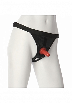 Introducing Doc Johnson's Ultra Harness with a Plug. This harness has an adjustable waist up to 53 inches, an open crotch for maximum comfort, easy access, and non-slip action; all designed to give you command and control for your erotic pleasures. This Harness can be used by women or men. The opening under the plug is high enough to allow the man's penis to hang below. Just add your favorite Doc Johnson Vac-U-Lock attachment and you're ready to go! Comes with Vac-U-Lock® plug.