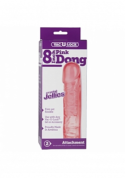 Lock this whopper into place for a memorable strap-on experience. This 8 inch Crystal Jellies Dong offers the ultimate in easy access and non-slip action. An indispensable addition to your roster of Vac-U-Lock toys. phthalate-free, body-safe. Proudly Made in America.