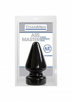 The TitanMen collection from Doc Johnson presents the Ass Master. Designed for ass play, this butt plug is 9" long and has a diameter 4.5". It will certainly fill you up! The plugs are dual density with an indestructible outer skin and cushy interior fill, and are made with our antibacterial, Sil-A-Gel formula. Black. Non-phthalate PVC and proudly made in America.