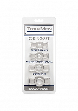 Enhance your member with the most convenient and manageable cock rings available. These TitanMen Tools Cock Rings stretch to fit with the aid of easy to grip side tabs. Each set contains 4 rings ranging in size from 0.4" to 0.75" un-stretched. The largest flexible ring can accommodate up to a 3" diameter shaft. The rings are easy to place and remove, even with slippery hands, because each tab features a thick border, allowing the rings to be adjusted with ease. The TitanMen Tools Cock ring set is made of non-phthalate TPR and is available in Black, Blue and Clear.