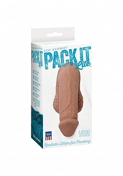 Pack It Lite! Specifically designed for comfortable all-day wear, Pack It fits perfectly in jockey shorts, jock straps, and packing shorts. Boasting an authentic look and feel, complete with veined detailing and plush balls, this solid yet soft UR3® packer is 4.5" long, with a 1" width. Available in White, Brown, and Black. Made of phthalate-free body-safe Material with Doc Johnson's antibacterial Sil-A-Gel formula.