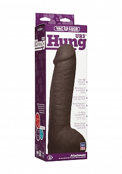 Satisfy your craving for size with UR3® Hung from Vac-U-Lock! Featuring over 12” of massive length and 3” of incredible girth, Hung offers a dual-density life-like feel with every detail realistically captured from the plump head, to the bulging veins. Compatible with any Vac-U-Lock Set, Accessory, as well as O-rings, this Attachment includes a Large O-ring specifically designed to fit the hefty girth of Hung. Get ready to experience endless possibilities in pleasurable play with this massive cock!