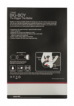 Big-Boy is a serious prostate vibrator for all big boys who like nothing more than to play with big toys. Big-Boy stimulates your prostate and perineum, but is entirely hands free so you can lie, sit, stand or do whatever you want to yourself or your partner whilst you are delivered your most powerful orgasmic experience ever! • Powered by the award winning 7 speed RO-80mm Bullet • 100% waterproof • Designed with comfort and pleasure in mind • Made with soft flexible body safe silicone with a removable bullet for hygiene and cleansing • Colour choice of Sexy Black or Vivid Red