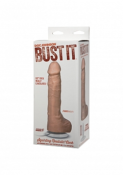 Get ready to Bust it, with this 8.5" big boy! Designed to emulate the look and feel of an erect penis, this Realistic® cock even squirts and ejaculates on command; thanks to the creamy cum-like “Nut Butter"! The cock and balls are perfectly textured and anatomically correct, for the most life-like experience on the market. Even the Nut Butter looks and feels like real cum! Features a suction cup base for versatile playtime. Available in White, Brown, and Black, Bust It includes a 1 oz. tube of creamy white Nut Butter. Individual 4 oz. bottles of Nut Butter are also available for purchase. Phthalate-free and Body-safe.