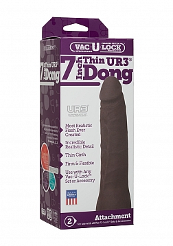 With its classic bestselling shape, phallic head, and perfectly textured shaft, this 7" attachment will have you falling in love! Made with our lifelike UR3® material, the Vac-U-Lock 7 Inch Thin Dong Attachment works with all Vac-U-Lock™ systems and is Proudly Made in America.
