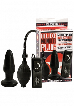 Pump it up! Designed with a classic tapered shape for easy entry, this inflatable vibrating plug grows in size with every squeeze of the bulb. The expandable casing in strong, flexible silicone is hypoallergenic and velvety soft for the most pleasurable use. A quick-release air valve immediately returns the plug to its original size when held down, and can also be used incrementally to change the size of the plug during play – experience a new sensation with every pump or release. The Deluxe Wonder Butt Plug's powerful multi-speed vibrations are operated via a simple push-button control for easy one-handed use.