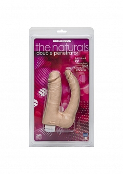 This Vibrating Double Penetrator offers dual vaginal & anal play, made from rubber with a realistic feel! The vaginal dong measures 5 inches in length, and has a 5 inch girth. The anal dong measures 5 inches in length, and has a 3.5 inch circumference. This 'Naturals' dong has realistic style and thick veined for additional pleasure, with a twist bottom to power it on!