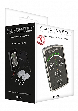 The ElectraStim Flick EM60-E pack includes a stimulator, all required cables and a set of 4 ElectraPads, so you have everything you need to start experimenting with electro sex. Perfect for beginners or those upgrading an old e-stim stimulator, Flick has a host of features to explore. A luxurious slim-line stimulator with LED display and ergonomic control.