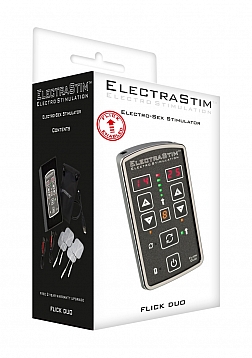The ElectraStim Flick EM80-E pack includes a Flick Duo dual-channel stimulator, all required cables and a set of 4 ElectraPads, so you have everything you need to start experimenting with electro sex. Perfect for beginners or those upgrading an old e-stim stimulator, Flick has a host of features to explore. A luxurious slim-line stimulator with LED display and ergonomic control.