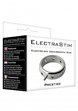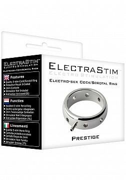 Beautifully crafted from 316 surgical steel, the ElectraStim Prestige Cock Ring is beautifully polished and made to the highest quality. A uni-polar electrode designed for use with any ElectraStim stimulator, this stunning metal cock ring brings you a whole new way to experience electro-stimulation. The heavy weight and tight fit work together to offer you deep and powerful erotic sensations. A series of holes around the circumference trap electro-conductive gel for prolonged sensation.