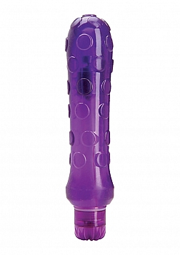 • Powerful motor in tip dazzles with potent vibration • Twist base knob elates you with multi-speed action • Raised nubs on shaft charm you with enchanting extra friction • Full size gems for intense pleasure - 6.75 insertable inches (17 cm) • This gem is waterproof for pleasure anywhere and easy cleaning • Phthalate free • Uses 2-AA batteries (not included)