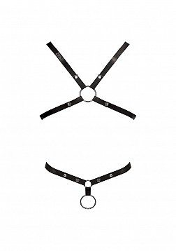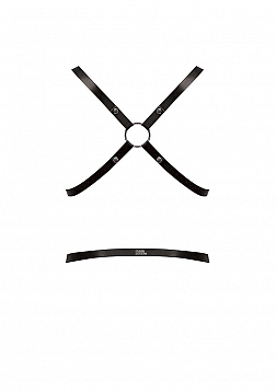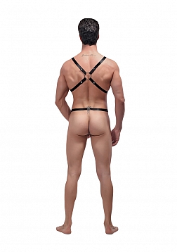 Shoulder harness with a detachable C-ring waist band, adjustable steel snaps.
