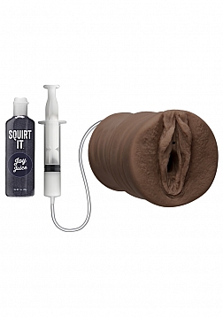 Your wettest and wildest fantasies are now in the palm of your hand with this ultra-lifelike squirting pussy stroker! Made of our incredibly lifelike ULTRASKYN™ material, the Squirt It masturbator squirts on command thanks to an easy-to-fill syringe and a 1 fl. oz. bottle of realistic Joy Juice. Squirt It also features a tight pleasure tunnel with plush internal ribbing, for even more pleasure. When you're ready, just squeeze the attached squirt syringe to flood the Squirt It and yourself with sweet pussy juice. Open-ended design makes cleanup a breeze. Each Squirt It includes a 1 fl. oz. bottle of Joy Juice, Doc Johnson's special formulation made specifically for use with our squirting pussy masturbators.