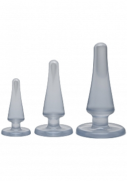 The Crystal Jellies Anal Initiation Kit allows beginners to ease into backdoor play while enjoying each stage of intensity and fullness. Three classic plugs in smooth, body-safe material sized at one-inch intervals offer progressive levels of sensation, while flared bases and a firm yet flexible feel ensure safe and versatile fun. Experienced backdoor enthusiasts can also enjoy this set as the warm-up for a night of more extreme intimate exploration