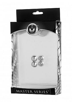 Bring them to their knees in powerfully pinched pleasure. This set of two ultra magnetized orbs may be small in size, but these intense balls pack some serious pressure. Once placed on sensitive flesh, these extremely powerful magnets begin to apply pressure. Make a game of seeing how long they can keep these pinching set of extra strong magnets in place. As your plaything relaxes, the pressure will continue to give them what they have been craving.