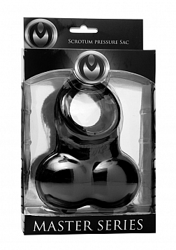This devious scrotum sack creates a mild pressure sensation as well as a confining caress against the skin of the wearer. Simply fit the penis through the top ring and slip the bottom pouch over the scrotum. The Chamber gives just enough to fit over the wearer, while remaining firm enough to keep things interesting. The top ring helps retain blood flow for an enhanced erection. Is it reward? It is your domain, you decide.