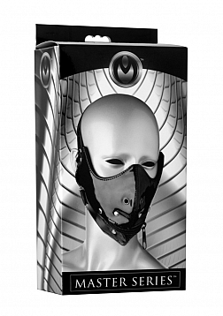 Keep your plaything zipped up and under control with this half face zipper muzzle from the Master Series. With a sexy vinyl exterior and zipper mouth hole, you get to decide just how much talking your naughty one gets to do. Covering the lower half of the face, this devious muzzle has a neoprene lining and two breathable nose holes. The elastic bands secure the mask in place while remaining pliable. Once on, this mask will create a sense of confinement without being too overwhelming for the wearer.
