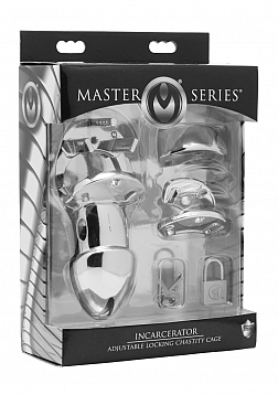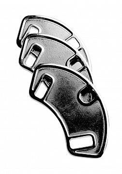 Lock up your mans cock and balls in this fully adjustable chastity cage! With a cuff-like design, the base ring of this device accommodates six different sizes. Lock the ring in place with the pin-in-hole plate system to trap his balls in the confines of that stainless steel ring. Meanwhile, his flaccid shaft will be stuck in the small metal cage with no escape! Three spacers allow you to adjust the cage to fit his length. Lock him up and watch him struggle for as long as you want! This device is breathable and includes a hole for him to urinate through for long-term use.