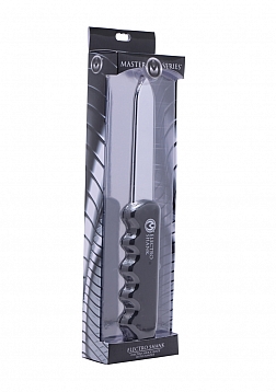 This prod-style electro shock device is a devious way to keep your sub in line! The Electro Shank is designed for electro play enthusiasts and curious sadists and masochists alike. Take hold of the comfortable handle while your play thing prepares for a zap! This device delivers an intense shock that is sure to correct your lovers naughty behavior. The sleek, sensual blade is perfect for teasing your sub before delivering the shock! An easy-to-use button allows you to control the length and frequency of the shocks, while the handle and blade are safe to the touch.