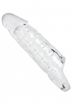 This smooth, clear cock enhancer has a retaining strap and is studded internally with gripping nodes. The phallic shape instantly adds girth and length, with thick walls and a solid tip. The material is stretchy yet firm, and is phthalate-free