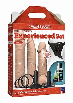 Your perfect strap-on experience is on lock with Doc Johnson’s deluxe line of full-service Vac-U-Lock Harness Sets. The Vac-U-Lock Dual Density Experienced Set is an excellent choice for experienced strap-on players and those accustomed to deeper penetration. A complete harness with removable o-rings and plug, three dual density ULTRASKYN attachments, and a bottle of Mood water-based lube make an intense strap-on romp as easy as 1-2-3. Featuring the dual density effect--a soft, pliable exterior that gives way to a firm inner core—in lifelike material that warms to the touch, realistic attachments in 8, 9, and 10 inch sizes impart a strong and realistic sensation.     Attachments can be used with the harness, the included Vac-U-Lock suction cup, and any other accessory or harness in the line. The Vac-U-Lock Dual Density Experienced Set also includes Doc Johnson Natural Toy Cleaner and ULTRASKYN Refresh Powder to properly and hygienically maintain your dual density ULTRASKYN attachments. Every product in the patented Vac-U-Lock system is designed to help you create any strap-on or toy you’re in the mood for, and it’s as simple as popping on the attachment of your choice.