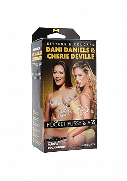 Kittens and Cougars team up to please you in this double-ended ULTRASKYN stroker. Each side features a tight, plush opening molded directly from the body of sexy starlet Dani Daniels and gorgeous MILF Cherie DeVille—this version brings you Dani’s pussy and Cherie’s ass. When you’ve exhausted one, just flip to the other side to fuck another luscious porn star. Whatever you’re in the mood for, our Kittens and Cougars are sure to satisfy.