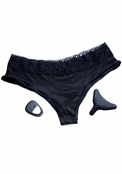 Whether you are looking to spice up a night at home, or get kinky out and about, this discreet remote control vibrating panty set will create an unforgettable experience! Make your fantasies come to life when you take complete control of your lovers pleasure. Tuck the vibrator into the sexy and stylish lace cheeky panties, accentuating her assets. When she least expects it, give her a buzz! The simple one-button system allows you to cycle through 3 vibration speeds and 7 rhythmic modes, and it works from up to 16 feet away! The ergonomically-shaped vibe ensures that she will feel the vibration all around her vulva, and even in that sensitive opening. How far can you take her when you hold ecstasy in the palm of your hand?
