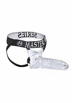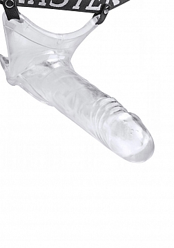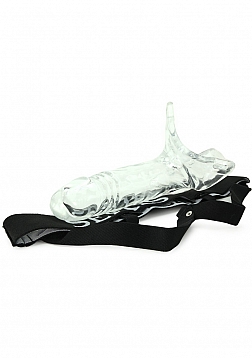 This clear penis extender adds length, girth, and hardness while allowing your rod to show through. The elastic waist and ergonomic base hold it tight to your body as the realistic head and textured shaft penetrates your partner. Can be used hard or soft, with a hole at the base that allows your balls to hang down. A single strap runs up the back, and the sturdy elastic stretches to fit most any size.