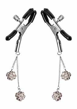 This sparkling set of rhinestone adorned nipple clamps will give you a dazzling way to make sure their eyes stay on you! The cube shaped embellishments are set on all sides with clear sparkling gems which catch the light with every movement. The clamps themselves are vinyl coated, with a thumb screw that allows you to adjust the tightness as you need it. The adjustable pressure make them ideal for all experience levels.
