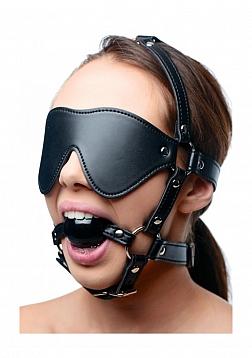 Take away two of your playthings most essential senses when you wrap their head in a devious bondage device! This head harness uses a blindfold to effectively blind your lover while you play with them. They will not know whats coming as you tickle, lick, spank, tease, and please. Every sensation will be amplified! Wedge the ball gag in their mouth to also take away their ability to speak! Every moan will be muffled through the gag, but they won't be able to beg for more as you take things at your own pace. Impress your lover with your abilities as they are left helpless. You will love how they look in this sexy and restrictive head harness!