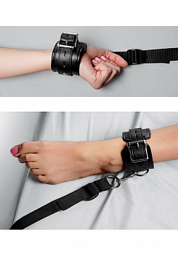 Strap your partner down to the bed and turn them into your personal submissive pet! Instantly transform your bed into a piece of bondage furniture, perfect for opening your lover up, spread eagle! They will be writhing in ecstasy as you please, tease, and torment their helpless body. The sturdy cuffs are lined with comfortable padding so that you play things wrists and ankles will not grow sore as play sessions last long into the evening. The buckle allows for a wide range of adjustment to fit most sizes, and also locks so that your lover will feel even more deliciously trapped and confined. Just slide the restraint set under your mattress and pull the cuffs and straps up at the corners. Adjust the straps as needed to fit all bed sizes. Spice up your sex life and you will never want to get out of bed!