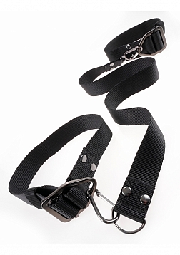 COMMAND. Made to Play Hard. Sir Richard's Deluxe Cuff Set for those who crave control. Deluxe Cuff Set features longer straps for added versatility and includes a separate Heavy-Duty Extension Strap to expand restraint options. Firmly secure wrists or ankles to suit your bondage-play. All heavy-duty straps are thick, durable industrial-strength nylon straps that feature fully adjustable stainless steel lock rings, allowing for a controlled, custom fit every time. Who is in COMMAND? Sir Richard's COMMAND Collection is for serious BDSM connoisseurs who demand the best. COMMAND components are forged from stainless steel and solid rivets, allowing for extreme fetish play. The professional-grade carabiners can support hardcore play and ensure complete control. The strategic V-Ring design offers further control and lessens slippage associated with average O-Rings. Use the carabiners to link the Deluxe Cuff Set to other COMMAND products for optimum versatility. Cuffs adjust up to 22" (55.88 cm) Strap Length: 28.5" (72.39 cm) 1 Year Limited Warranty – We've got you covered