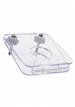 For the most intense ball-crushing play get this acrylic cock and ball crusher. This cock and ball board can apply pressure to both the cock and balls or just the balls, by simply inserting your cock and balls through the back hole. Then screw down the wingnuts to apply more and more pressure. If you desire you can have only your balls crushed you can simple slip your cock through the handy cock hole on the other acrylic board.
