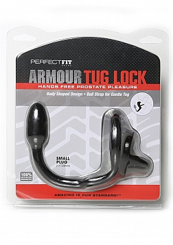 Armor Tug Lock - Cockring with Ball Strap and Butt Plug - Small