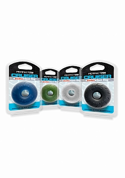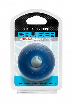 All Cruiser Cock Rings are made with SilaSkin(TM), a material especially created for Perfect Fit Brand. It's both soft and strong. The velvety texture is as close to real skin as we could get it. The strength means it holds up well to stretching and compression, making it ideal for rough sex. You can comfortably pull it on and it will return to its original 2.5" circumference. The extreme stretch factor makes this a true one size fits all ring, as it should fit even the thickest monster of a cock.