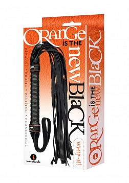 Wonderfully-sized flogger with leather-like strands and strong, sturdy handle. Sexy orange-stitched accents add a touch of fashion and intrigue.