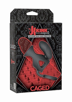 The Caged vibrating silicone cock cage from the KINK by Doc Johnson Collection takes sleeves and rings to another level with a longline design, built-in ball strap, and powerful vibrating bullet. A strategic open design along the shaft of the smooth silicone sleeve keeps direct stimulation strong while the snug fit of the cage and ball strap tug and tease the wearer into a raging, rock-hard erection. The bullet vibe’s one-touch control stimulates both the wearer and partners for an explosive finish. KINK by Doc Johnson is an exciting collaboration with KINK.com to create a collection of high-quality authentic fetish items suitable for long-term practitioners and new initiates alike.