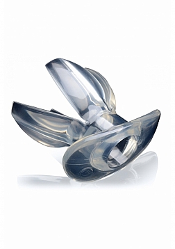 This intense anal claw will open you up like nothing else, giving your partner a whole new view of your ass! Pinch all four wedges together for a more manageable penetration. Once past your sphincter, this unique plug will expand, opening your insides up! The clear material and an opening at the base of the plug allows your partner to peer into your anal depths, or even fill you up with a dildo, an enema, or whatever your filthy minds come up with! The phthalate-free material is firm, yet flexible and will press against all the right spots inside you. Enjoy with silicone or water-based lube and clean with mild soap and warm water.
