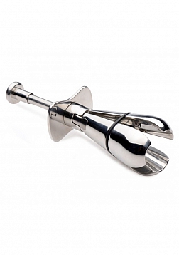 This locking expansion plug allows you to open it up inside your partners anus and then secure it in place! While closed, push the smooth, hard plug into their hole. After it is fully inserted, pull back on the stem that protrudes from the base. The three prongs inside your plaything will blossom, stretching their ass open! Once the stem has been retracted enough to expose a hole through it, slide the lock in to keep the plug open. Made of stainless steel, this plug is non-porous and phthalate-free. Use with any lubricant of your choosing. Clean thoroughly after each use with soap and warm water.