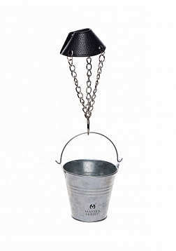 Weigh down that ballsack one pebble, coin, or drop of water at a time! Screw with your playthings body and mind when you wrap their scrotum in this leather-like parachute and hang a bucket from the three chains. CBT enthusiasts will love the customized sensations as you get creative, filling the Master Series bucket with anything your wicked mind desires. How much can your masochist handle? Find out with this durable design, or remove the bucket and attach a leash or other BDSM accessory for even more versatility.
