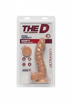 Everybody wants it! The Ragin' D is seven and a half full inches of lifelike dual density ULTRASKYN™ handcrafted to satisfy with a soft, pliable exterior and firm inner core. The realistic contoured head, heavily textured veins, and plush balls look as good as they feel hitting all your hot spots, while a sturdy suction cup base holds it steady for your roughest rides. The D™ by Doc Johnson is an exciting collection of our best-selling shapes, reimagined in lifelike dual density ULTRASKYN™. We've committed to keeping the quality high and the prices affordable, so everybody can get The D™.