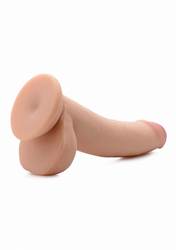 Long and thick, with a subtle curve to hit all the right spots! This beautiful dildo will deliver orgasmic ecstasy with its precise representation of a large erection with a bulbous head. Savor every ridge and ripple in the realistic penis and scrotum, designed to please your eyes and your body! The strong suction cup base can be mounted to a smooth, hard surface for hands-free penetration, but it also makes this dong strap-on compatible for partner use. This 8 incher will win you over with its perfect size and shape.