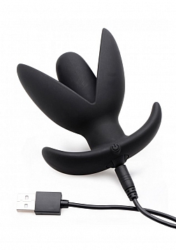 A smooth, manageable insertion that sprouts into a wide, anal invasion! This unique anal plug pinches together for comfort while you push it into you, but opens up once it gets past your sphincter, pressing on your anal walls. Best of all, this rechargeable device has a powerful vibrating bullet embedded in it, causing it to thrum with 3 intense speeds and 7 exciting patterns. The ergonomically shaped base is ideal for long-term wear, fitting comfortably between your cheeks. Made of premium silicone, this toy is non-porous and phthalate-free. Clean with mild soap and warm water and avoid use with silicone lubricants.