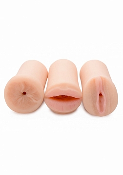 Having a hard time deciding whether you want to screw her mouth, pussy, or ass? This set of strokers allows you to play with all three! Jesse Jane is here to reclaim her throne. The bubby and busty blonde is back and ready for your cock! This All-American bombshell is one of the biggest porn stars of all time, known for her award-winning sex scenes and mainstream appearances. Each masturbation sleeve in this trio was molded directly from Jesse Jane so that you can bang her whenever and however you want. The stretchy material fits all sizes and is so lifelike that it feels just like the real thing! Both the mouth and pussy strokers are internally ribbed, while the anus stroker is nubbed for extra stimulation. The open-ended design makes them easy to clean after use. Care instructions included.