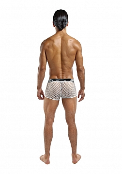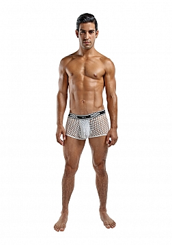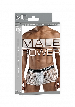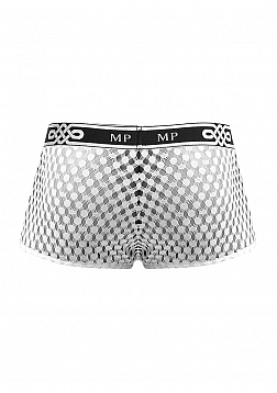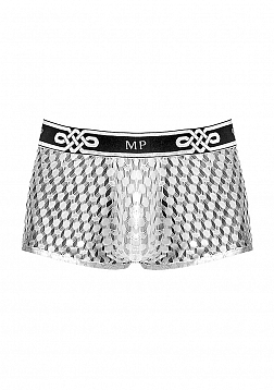 Mini pouch short with lined pouch, waist, high cut legs, new plush MP logo'd waistband.Feather light with soft stretch, open weaving offers a peek a boo effect and features a new MP logo'd plush elastic waistband.
