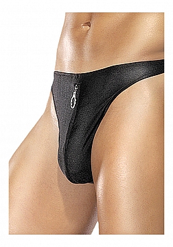 Stretch zipper thong features comfort fit pouch, functional peek-a-boo zipper accent in front with decorative oval slider, classic thong back and plush elastic waistband and trim.Stretchy nylon spandex blend is edgy, cool and comfortable