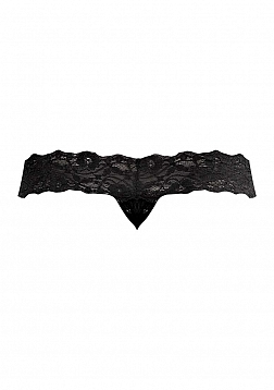 Lace micro thong features mesh pouch with cire trim, thick floral lace waistband and pinched lace thong back.Sensual stretch lace paired with super soft stretch mesh is feminine, comfortable and daring